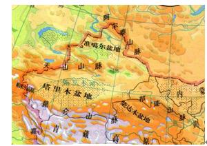 冰輒沉降理論認為:山脈的形成并非板塊水平運動的結果,而是地殼區(qū)域性沉降而造成的相對上升,起決定作用的是重力作用下的地殼區(qū)域性沉降,圖2所示是新疆地形圖圖中明顯可以看出地殼垂直運動的跡象。