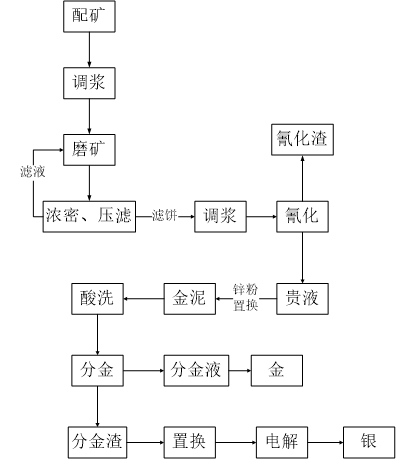 圖1 招遠(yuǎn)直接氰化工藝流程