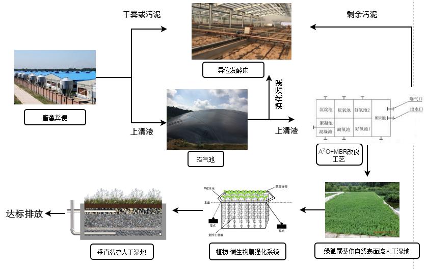而針對我國規(guī)?;B(yǎng)殖場來說,近些年來大多采用固液分離—厭氧發(fā)酵—好氧曝氣傳統(tǒng)三段式工業(yè)處理模式處理養(yǎng)殖廢水,即理、化并用技術(shù)。該處理模式具有占地小、季節(jié)適應(yīng)性強以及可產(chǎn)出部分能源氣體(沼氣)等優(yōu)點。但同時也存在投入、運行成本高,有機物和氮的去除不徹底,除磷工藝缺乏等缺點。隨著《畜禽養(yǎng)殖業(yè)污染物排放標(biāo)準(zhǔn)》(征求意見稿)的逐步落實,現(xiàn)行的畜禽養(yǎng)殖廢水處理工藝大多已無法滿足新標(biāo)準(zhǔn)的排放要求。
