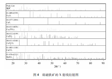 采用弱磁鐵礦磁化與稀土礦物分解一步法后X射線衍射如圖5所示。