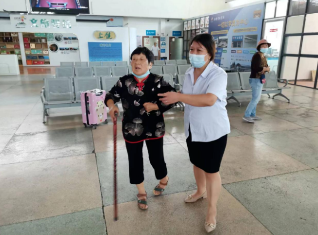 9月11日上午,上饒客運(yùn)中心站臻心班組成員劉玉芬看見(jiàn)一位行動(dòng)不便的老年乘客,在車(chē)站候車(chē)大廳無(wú)家人照料,便主
