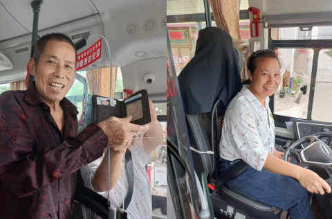 9月4日,旅客彭先生來到永新至芰田的公交車上,從工作人員手里接回失而復得的錢包,并向駕駛員賀真花表示衷心的