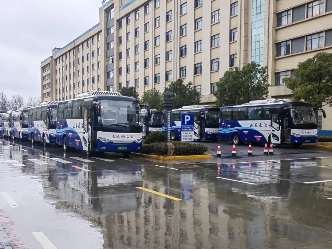 2月1日18時(shí),彭澤縣磯山工業(yè)園區(qū)內(nèi),九江長(zhǎng)運(yùn)彭澤公司公交車正整齊??吭诼愤?,準(zhǔn)備接送江西心連心化學(xué)有限公司