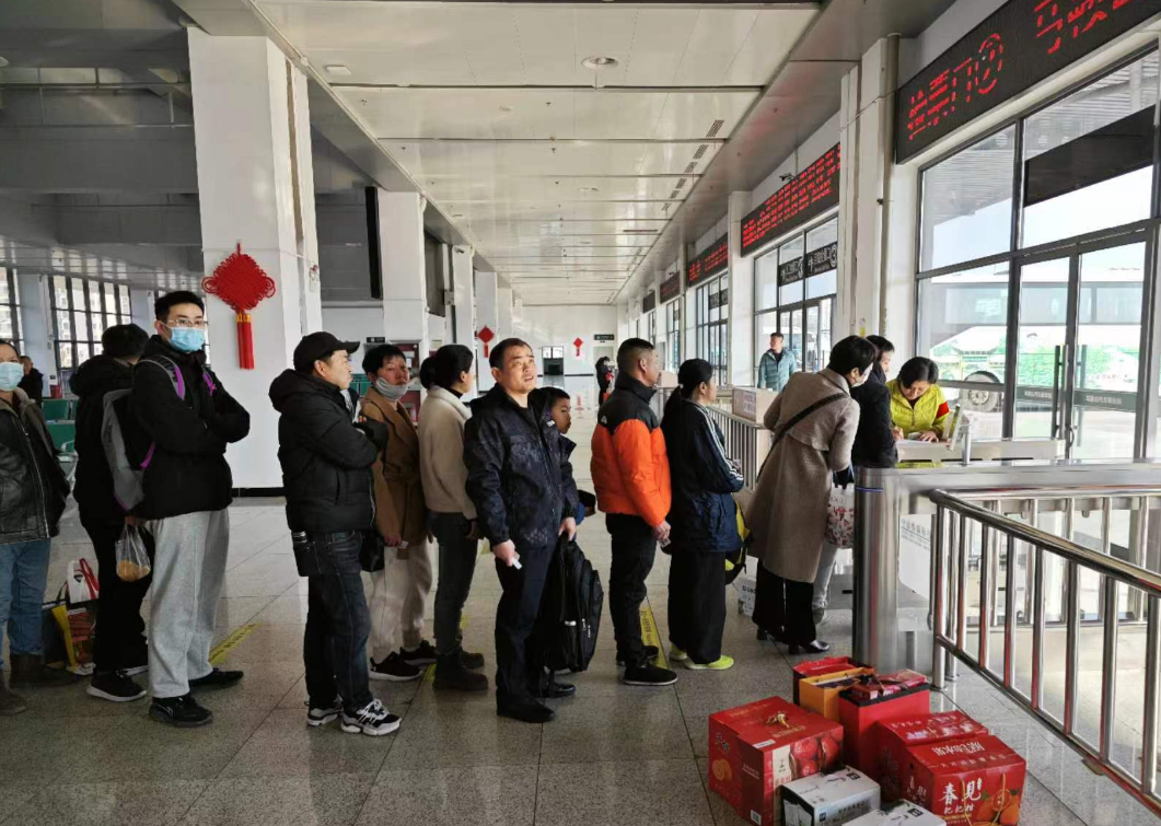2月6日,位于火車站站前廣場(chǎng)處的城際公交驛站內(nèi),人頭涌動(dòng),室內(nèi)在空調(diào)的加持下暖意融融,與室外陰雨綿綿、寒風(fēng)