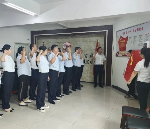 7月1日,鷹潭長運黨委為慶祝黨的生日,組織黨員干部重溫入黨誓詞。鮮紅的黨旗前,鷹潭公司黨委書記汪斌領誓,全